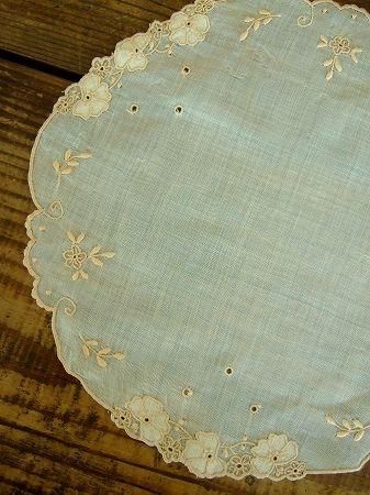 color アイボリー、ベージュ、素材 コットン、size 直径25cm、年代不明、買い付け国 イギリス、コンディション◎、少々シミあり。※アンティークの為、多少の汚れやほつれなどは予めご了承下さいませ。