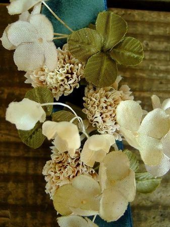 color アイボリー、グリーン、ベージュ、ブルー、素材 真鍮、コットン、made in JAPAN、size (モチーフ)全長9m、(リボンの長さ)37cm、※黒い部分はゴムとなっております。
