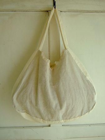 color アイボリー、ナチュラル、素材 リネン、コットン、made in JAPAN、size 28cm×46cm、(まち 6〜9.5cm)、持ち手 46cm ※こちらの製品は手刺繍、手編み、デッドストックのハンカチやクロスを使用したリメイク商品です。予めご了承下さいませ。