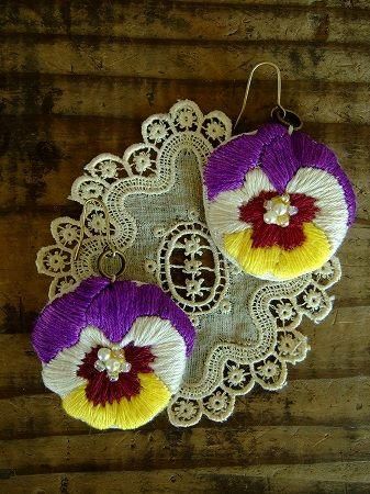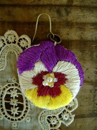 color パープル、イエロー、ベージュ、素材 コットン、ピーズ、made in China、size モチーフ 直径3.5cm