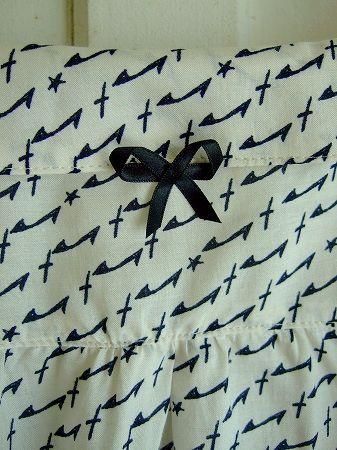 color オフホワイト、ネイビー、素材 テンセル53%、コットン47%、made in China、size 38、着丈53cm、バスト108cm、袖丈43cm、肩幅38cm