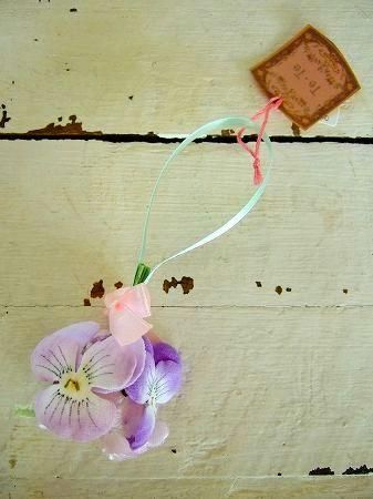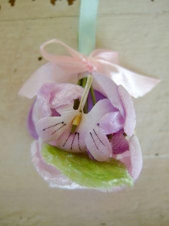 こちらは作家Te・Teさんがハンドメイドで制作して下さいました素敵なコサージュオーナメントです。1点1点生地をカットしそれから手染めをし、お花に仕上げて下さいました。とっても手の込んだ素敵なオーナメントです。お部屋のインテリアにまたカゴバッグに付けても素敵!!革ひもを通してネックレスにも・・・使い道いろいろの素敵なコサージュオーナメントです。