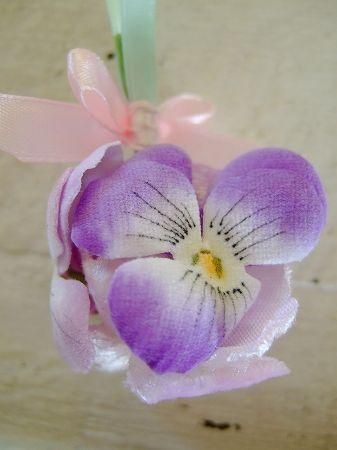 color パープル、グリーン、素材 コットン、made in JAPAN、size モチーフ 約5×4cm、全長14cm