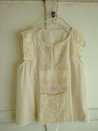 color アイボリー、素材 cotton100%、made in China、size F、着丈52cm、バスト92cm、肩幅38cm、※裏地は付いておりません。