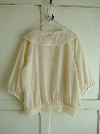 color アイボリー、素材 cotton100%、made in China、size F、着丈52cm、バスト100cm、袖丈36cm、肩幅38cm、※裏地は付いておりません。