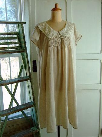 color ナチュラル、アイボリー、素材 Linen55%、cotton45%、made in China、size F、着丈92cm、バスト118cm、袖丈14cm、肩幅38cm、※裏地は付いておりません。