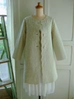 color ネイビー、アイボリー、ブラック、素材 cotton70%、Linen30%、made in China、size F、着丈93cm、バスト90cm、肩幅38cm、※裏地は付いておりません。襟部分は縫い留まっております為、取り外し不可となります。