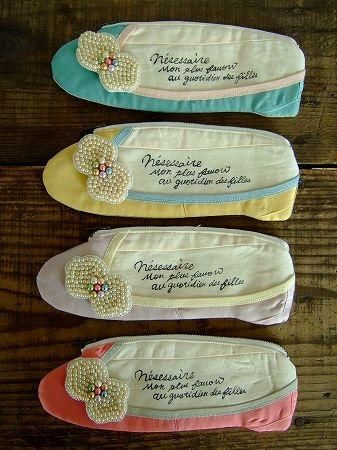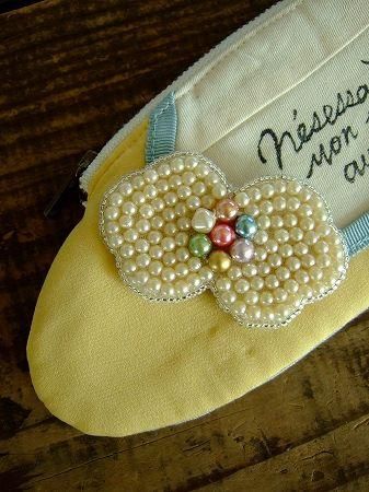 nesessaireリボンブローチ付きパンプスペンケースYE