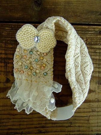 color アイボリー、ゴールド、ピンク、ブルー、素 cotton70%、Linen30%、(チュール部分)ナイロン100%、made in China、size (幅)8cm、(1周)46cm、※ゴムが(5.5cm)付いております為、サイズ調整可能です。リボンブローチは取り外し可能です。