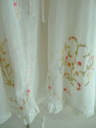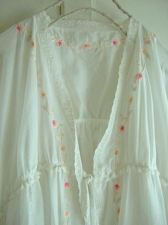 color オフホワイト、(刺繍)ピンク、グリーン、オレンジ、パープル、素材 cotton100%、made in China、size F、着丈77cm、バスト フリー、袖丈32cm、肩幅38cm、※裏地は付いておりません。