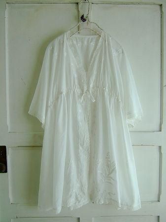 color オフホワイト、(刺繍)オフホワイト、素材 cotton100%、made in China、size F、着丈77cm、バスト フリー、袖丈32cm、肩幅38cm、※裏地は付いておりません。