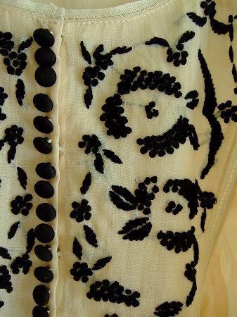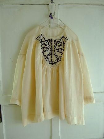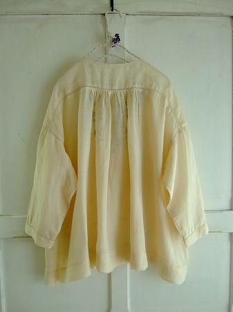 color アイボリー、(刺繍糸 ブラック)、素材 Linen100%、made in China、size F、着丈62cm、バスト165cm、袖丈45cm(切替しより33cm)、肩幅38cm