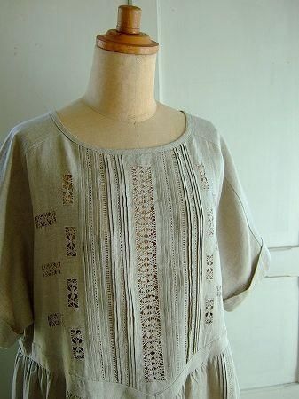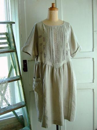 color ナチュラル、素材 Linen100%、made in China、size F、着丈94cm、バスト105cm、袖丈26cm、肩幅38cm、※裏地は付いておりません。
