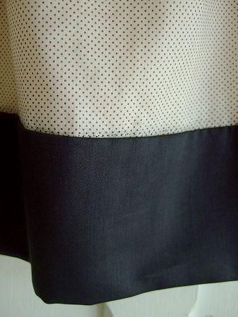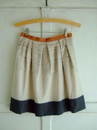 color オフホワイト、ブラウン、ネイビー、素材 cotton100%、(別布 コットン55%、リヨセル45%、裏地 ポリエステル100%)、made in China、size 38、着丈49cm、ウエスト66cm、ヒップ105cm
