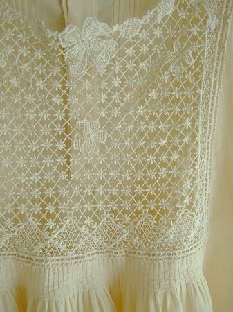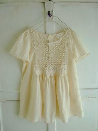 color アイボリー、素材 cotton84%、Linen16%、(レース部分 cotton100%)、made in China、size 38、着丈60cm、バスト95cm、袖丈18cm、肩幅38cm、※裏地は付いておりません。