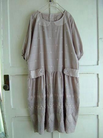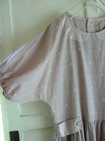 color ラベンダー、素材 コットン50%、キュプラ50%、(別布 コットン100%)、made in Japan、size F、着丈97cm、バスト105cm、袖丈32cm、肩幅38cm、※裏地は付いておりません。袖口・背中ウエスト部分にゴムが入っています。
