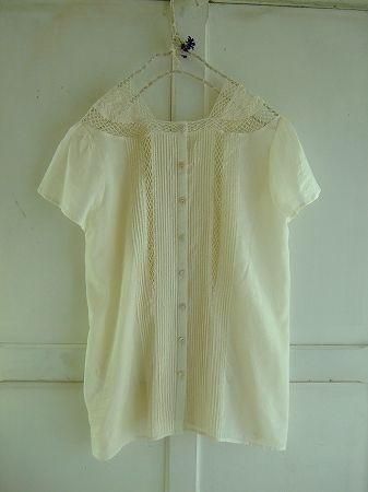 color アイボリー、素材 cotton100%、made in China、size 38、着丈57cm、バスト90cm、袖丈14cm、肩幅38cm、※裏地は付いておりません。