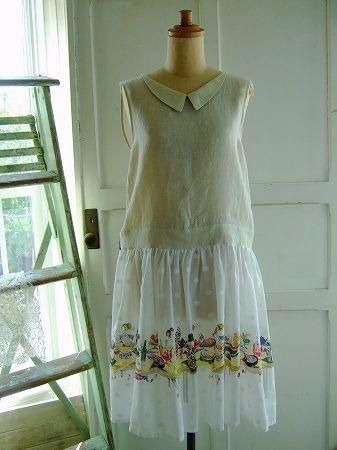 color ナチュラル、オフホワイト、素材 (トップ) Linen100%、(スカート) cotton100%、made in China、size F、 着丈97cm、バスト88cm、肩幅38cm、※裏地は付いておりません。