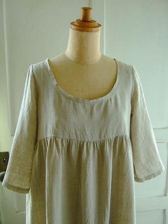 color ナチュラル、素材 Linen100%、size 38、made in Japan、 着丈90cm、バスト96cm、袖丈39cm、肩幅38cm、※裏地は付いておりません。