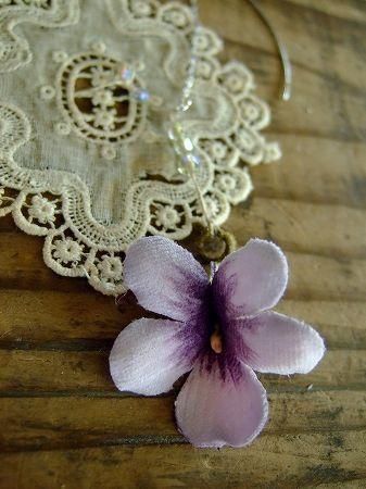 color パープル、グリーン、シルバー、素材 コットン、真鍮、made in JAPAN、size (スミレ)直径3cm、(全長)15cm、※アメリカンタイプの片耳ピアスとなります。