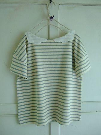 color アイボリー×グレー、ブラック、オフホワイト、素材 cotton100%、(襟部分 cotton100%)、made in Japan、size F、 着丈51cm、バスト102cm、袖丈20cm(切替しより10cm)、肩幅38cm、※襟部分はスナップボタンで留まっております為、取り外しが可能です。