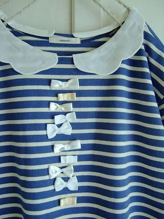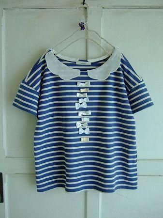 color ブルー×アイボリー、オフホワイト、クリーム、素材 cotton100%、(襟部分 cotton100%)、made in Japan、size F、 着丈51cm、バスト102cm、袖丈20cm(切替しより10cm)、肩幅38cm、※襟部分はスナップボタンで留まっております為、取り外しが可能です。