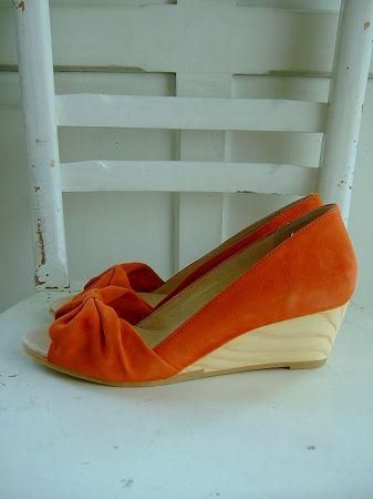 color オレンジ、ナチュラル、素材 牛革、ウッド、(底)ラバー、made in Spain、size 38(24.0〜24.5cm)、ヒールの高さ5.5cm
