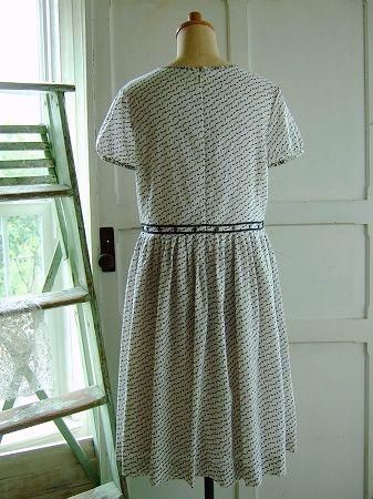 color オフホワイト、ネイビー、素材 テンセル53%、コットン47%、(別地 コットン60%、キュプラ40% / 身頃裏地 コットン100% / スカート裏地 ポリエステル100%)、made in China、size 38、着丈97cm、バスト93cm、袖丈18cm、肩幅38cm