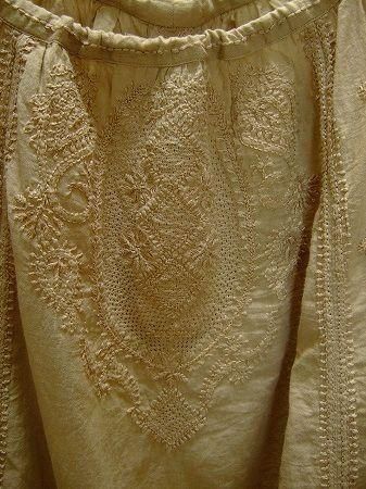 color ベージュ、素材 cotton100%、made in India、size M、着丈55cm、バスト132cm、袖丈50cm、肩幅38cm、首周りにリボンが通してあり、絞ってギャザー寄せて着用頂けます。