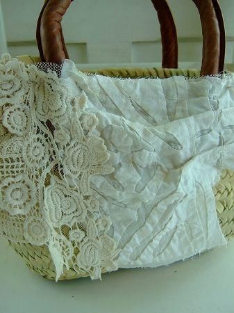 color ナチュラル、アイボリー、オフホワイト、ブラウン、素材 シーグラス、リネン、コットン、made in JAPAN、size (カゴバッグ)幅37cm、高さ17cm、(底13×22cm)、持ち手31cm、※こちらの製品は手刺繍、手編み、デッドストックのハンカチやクロスを使用したリメイク商品です。多少の傷や汚れはご了承下さいませ。
