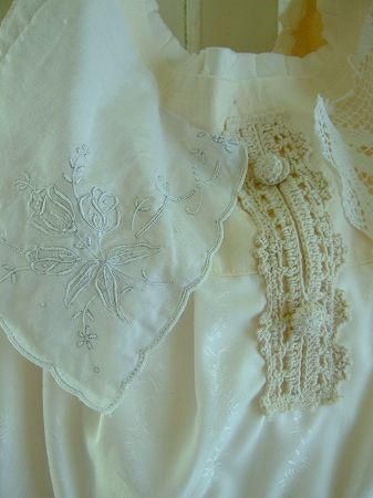 color アイボリー、オフホワイト、素材 リネン、コットン、made in JAPAN、size 28cm×46cm、(まち 6〜9.5cm)、持ち手 46cm ※こちらの製品は手刺繍、手編み、デッドストックのハンカチやクロスを使用したリメイク商品です。予めご了承下さいませ。
