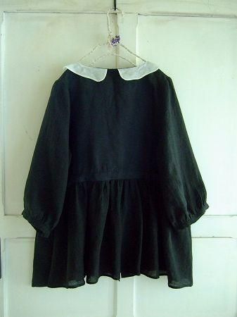 color ブラック、オフホワイト、素材 Linen45%、Silk45%、(別地)Linen100%、(襟部分)cotton100%、made in Japan、size F、 着丈64cm、バスト98cm、袖丈41cm、肩幅38cm、※ウエストのリボンをギュッと絞ってギャザーの調節が可能です。お好みでどうぞ・・・。