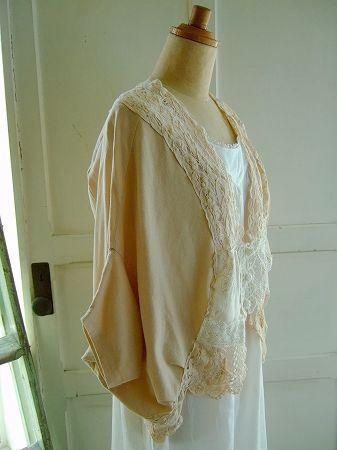 color ピンクベージュ、素材 cotton100%、made in Japan、size F、着丈54cm、バスト フリー、袖丈36cm(切替しより22cm)、肩幅38cm、※こちらの製品はデッドストックやアンティークのパーツを使用したリメイク品です。アンティークな風合いを出す為に手染め加工しております。直射日光・蛍光灯などの長時間の照射により色褪せたり、濃色品の場合摩擦により淡色に色移りする事があります。色褪せ、縮みなどを最小限にされます場合はドライクリーニングがお勧めです。