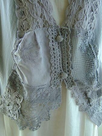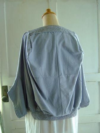 color ブルーグレー(パープルに近いお色です。)、素材 cotton100%、made in Japan、size F、着丈54cm、バスト フリー、袖丈36cm(切替しより22cm)、肩幅38cm、※こちらの製品はデッドストックやアンティークのパーツを使用したリメイク品です。アンティークな風合いを出す為に手染め加工しております。直射日光・蛍光灯などの長時間の照射により色褪せたり、濃色品の場合摩擦により淡色に色移りする事があります。色褪せ、縮みなどを最小限にされます場合はドライクリーニングがお勧めです。
