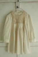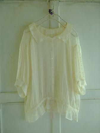 color アイボリー、素材 silk100%、made in China、size 38、着丈56cm、バスト122cm、袖丈36cm(切替しより27cm)、肩幅38cm、※裏地は付いておりません。ウエスト部分にリボンが入っております。