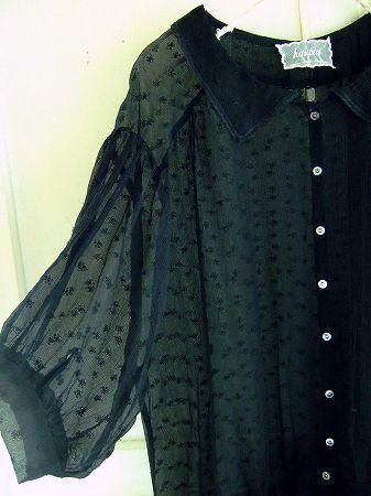 color ブラック、素材 silk100%、made in China、size 38、着丈56cm、バスト122cm、袖丈36cm(切替しより27cm)、肩幅38cm、※裏地は付いておりません。ウエスト部分にリボンが入っております。