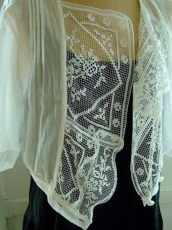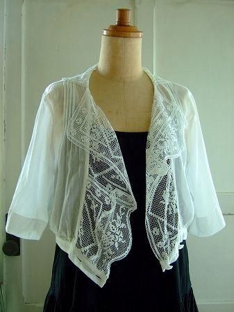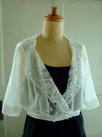color オフホワイト、素材 cotton100%、(レース部分 cotton100%)、made in Japan、size F、着丈37cm、バスト106cm、袖丈32cm、肩幅38cm