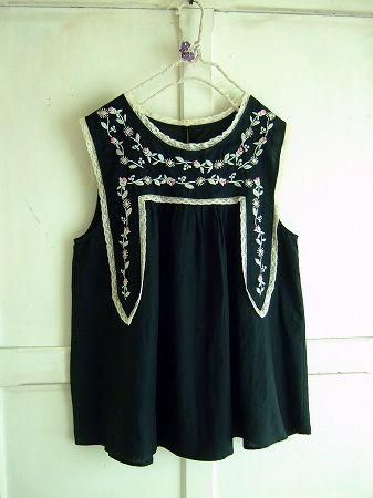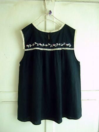 nesessaireフラワーハンド刺繍ブラウスBK