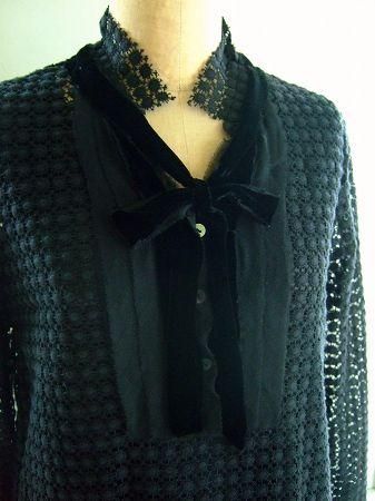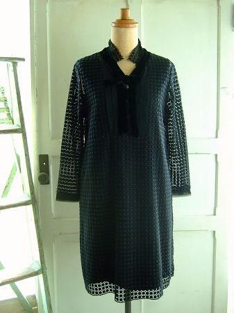 color ブラック、素材 cotton100%、(別布 silk100%、ベルベット / 裏地ポリエステル100%)、made in China 、size 38、着丈88cm、バスト94cm、袖丈50cm、肩幅38cm、※光沢のあるセパレートタイプのアンダードレス(ノースリーブ)付きです。