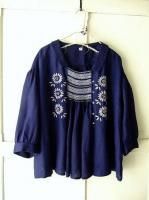 nesessaireハンドスモッキングフラワー刺繍ブラウスNV