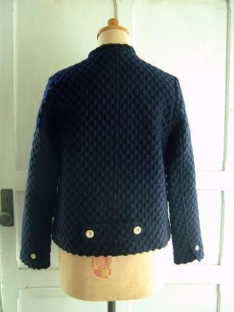 color ネイビー、素材 ウール80%、レーヨン18%、ナイロン1%、(別地 コットン87%、ウール13%、/ 裏地 ポリエステル100%)、made in China 、size 38、着丈53cm、バスト95cm、袖丈58cm、肩幅38cm