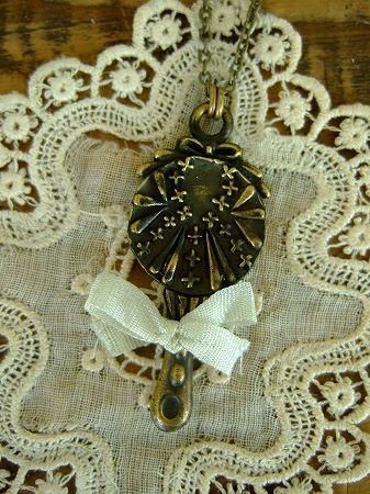 color 金古美、アイボリー、素材 真鍮、made in INdonesia、size (手鏡モチーフ)3.5cm、(チェーンの長さ)44cm、(アジャスター)5cm