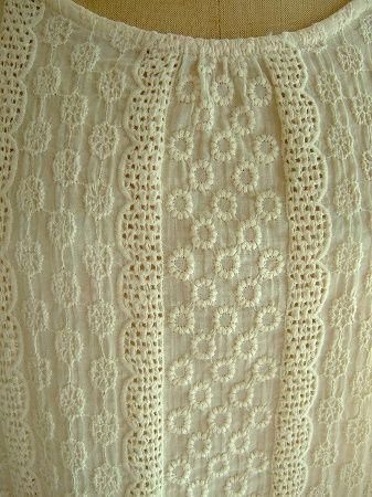 color アイボリー、素材 cotton100%、(レース部分)cotton100%、made in China、size 38、着丈55cm、バスト115cm、袖丈50cm(切替しより35cm)、肩幅38cm