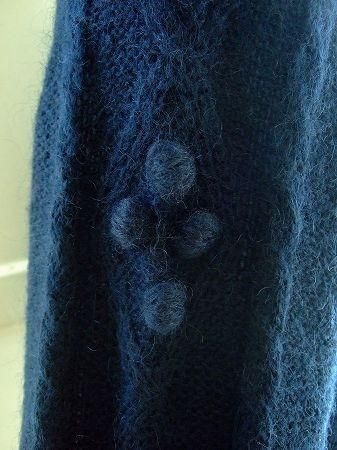 color ネイビー、素材 ウール45%、ナイロン40%、アクリル15%、made in China、size 38、着丈48cm、バスト92cm、袖丈45cm、肩幅38cm