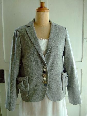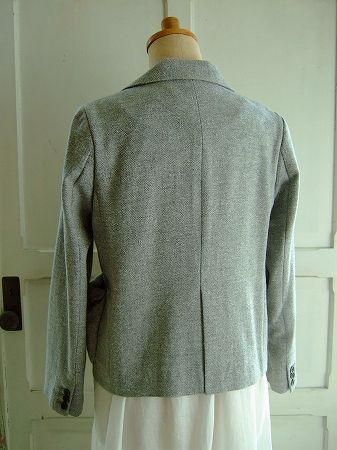color グレー、素材 コットン44%、リネン34%、ポリエステル22%、(裏地 ポリエステル100%)、made in Japan、size F、着丈54cm、バスト90cm、袖丈58cm、肩幅38cm、※ヘリンボン柄の生地となります。