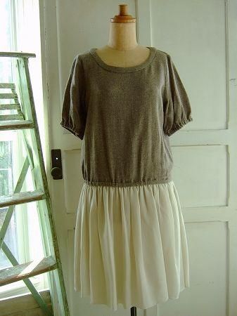 color ベージュ、(スカート部分)アイボリー、素材 ウール75%、リネン15%、ナイロン10%、(スカート部分 ポリエステル100%、裏地 コットン100%)、size 38、 着丈93cm、バスト100cm、袖丈28cm、肩幅38cm、※トップに裏地は付いておりません。スカート部分シフォンとコットン裏地が2枚重ねになっております。ウエスト・袖口周りにゴムが入っております。