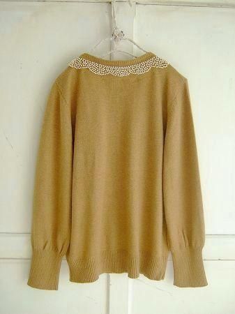 color ベージュ、オフホワイト、ブラック、素材 ナイロン40%、リヨセル25%、ウール20%、レーヨン15%、(裏地 ポリエステル100%)、made in China、size F、 着丈54cm、バスト90m、袖丈53cm、肩幅38cm、※裏地はパールビーズ刺繍が施されております部分のみとなります。