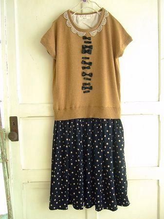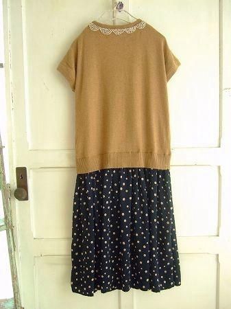color ベージュ、ネイビー、オフホワイト、ブラック、素材 ナイロン40%、リヨセル25%、ウール20%、レーヨン15%、(別布 ポリエステル100%、裏地 ポリエステル100%)、made in China、size F、 着丈100cm、バスト90m、袖丈14cm、肩幅38cm、※裏地はパールビーズ刺繍が施されております部分のみとなります。