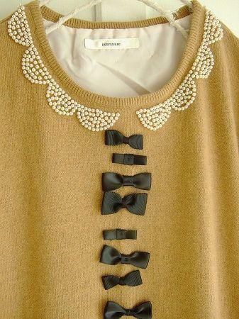 nesessaire ウールへリンボンリボンアップリケプルオーバーNV
