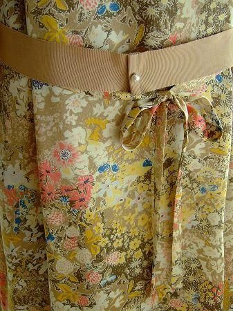 color カーキ、ピンク、ブルー、イエロー、ベージュ、素材 シルク100%、(裏地)ポリエステル100%、made in China、size 38、着丈90cm、バスト94cm、袖丈43cm、肩幅38cm、※ベルトとリボンは取り外し可能です。袖部分に裏地は付いておりません。